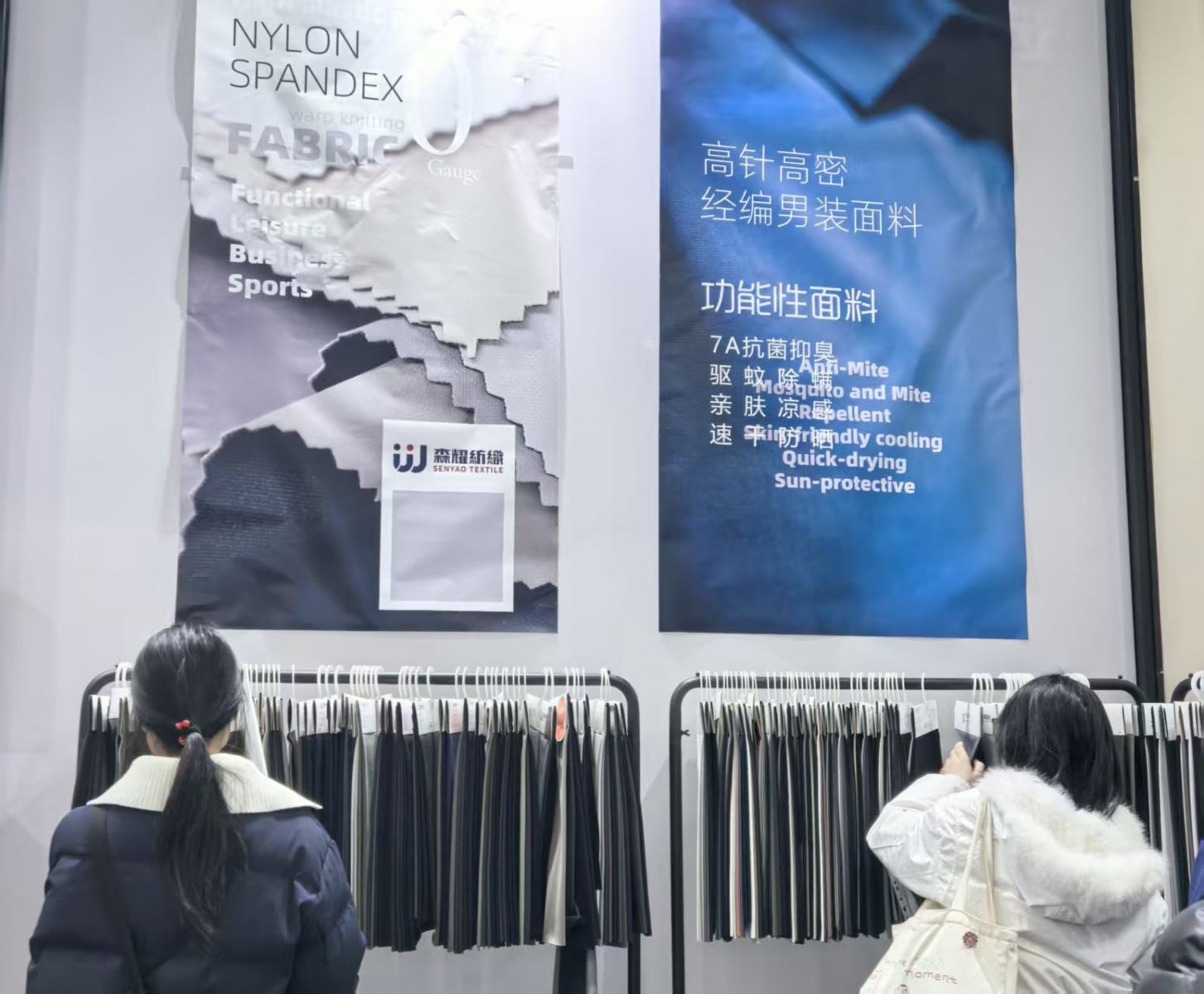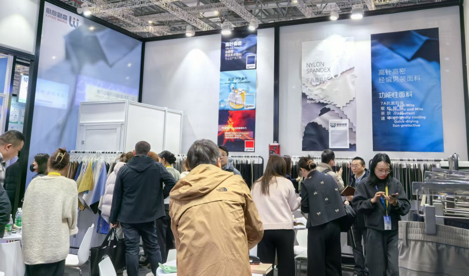 展会期间,阡陌纺织展位吸引了众多国内外品牌客户驻足洽谈。作为海宁经编产业的专业企业,公司重点展示了其在高针高密经编男装面料领域的研发成果,以及具备透气、耐磨等特性的功能性面料系列。凭借德国卡尔·迈耶高速经编机等先进设备保障的优良品质,产品赢得了行业专家与采购商的高度评价。